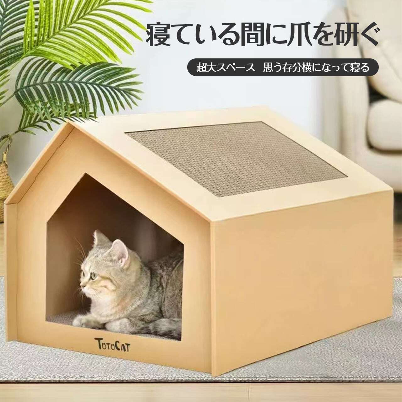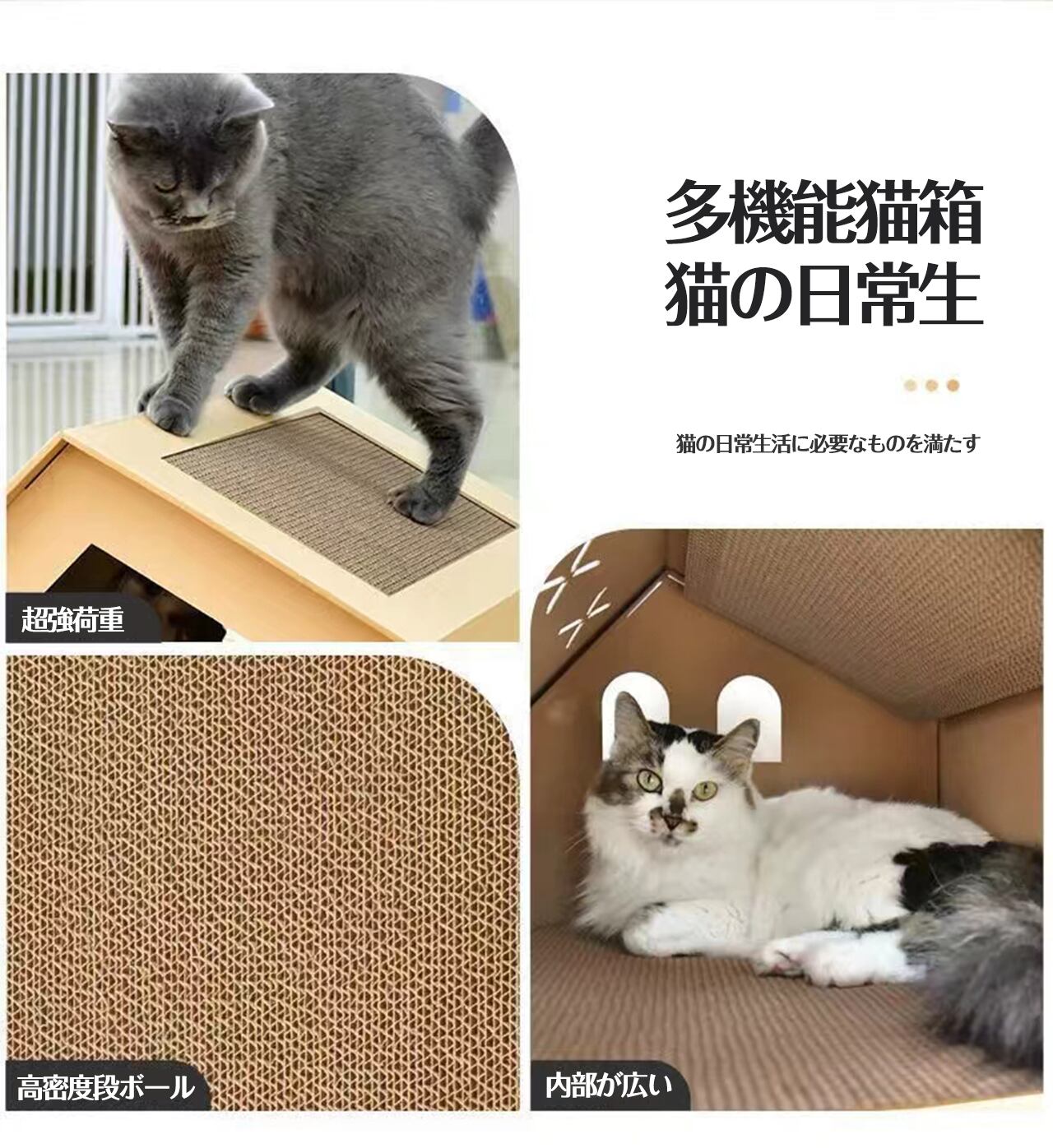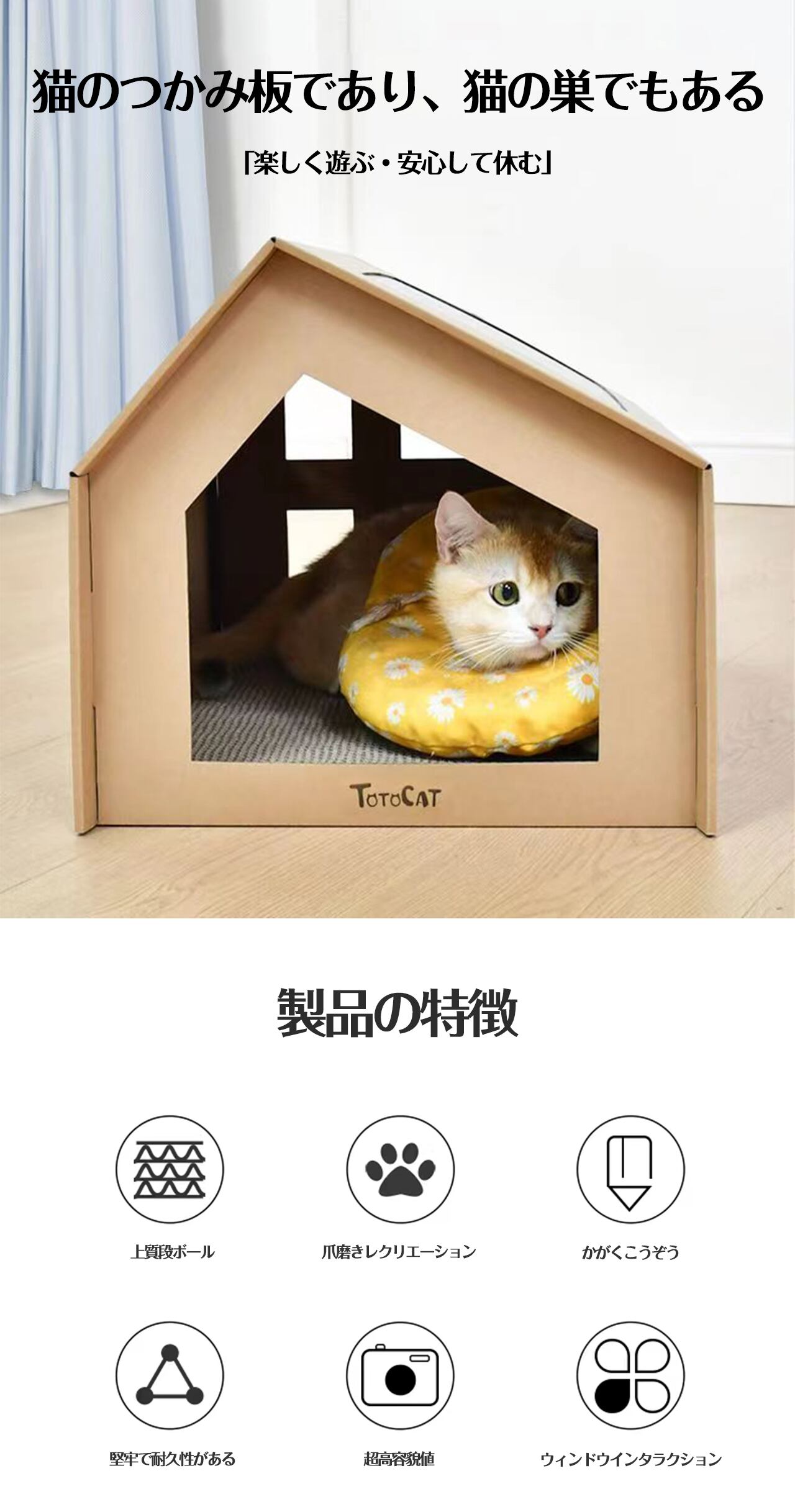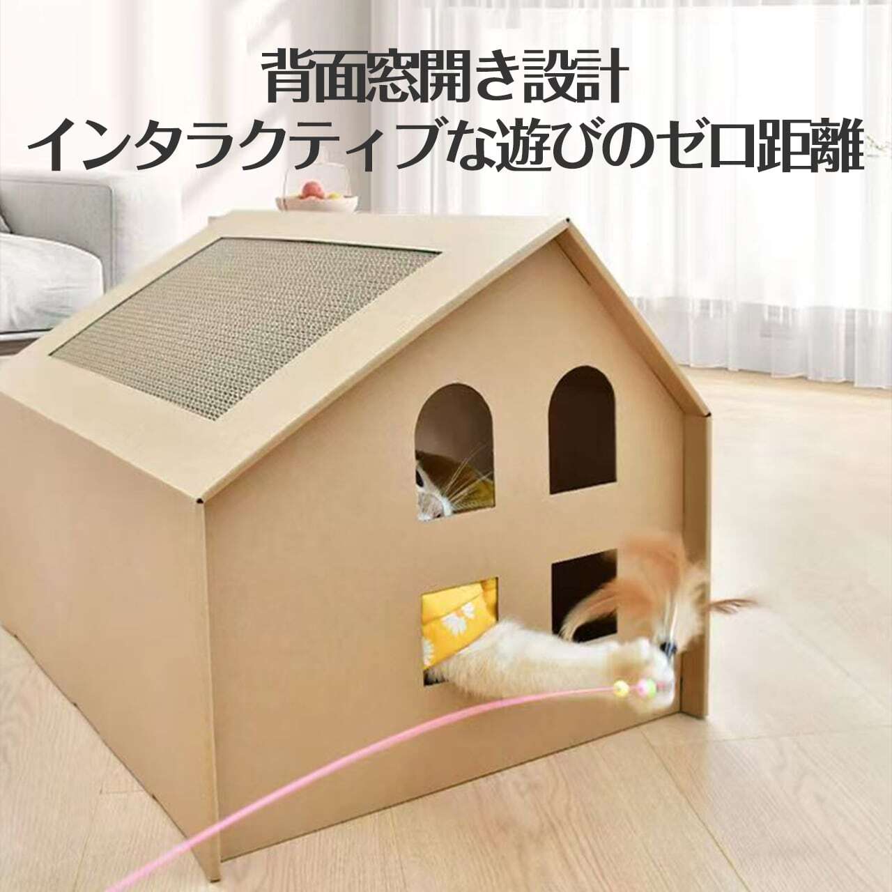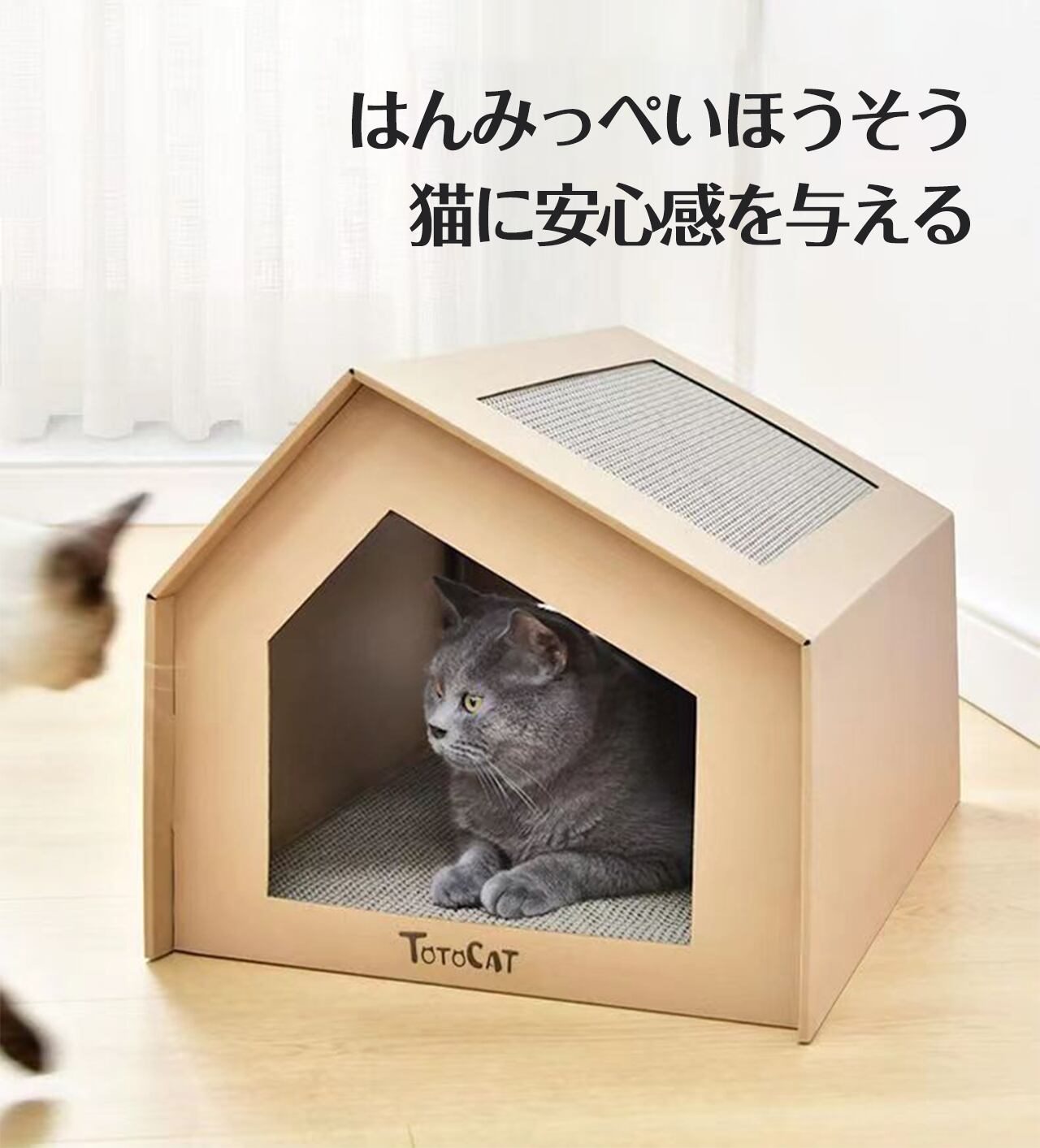 4004.猫ハウス ベッド ペットの寝床 ペット用段ボール箱 猫つかみ板