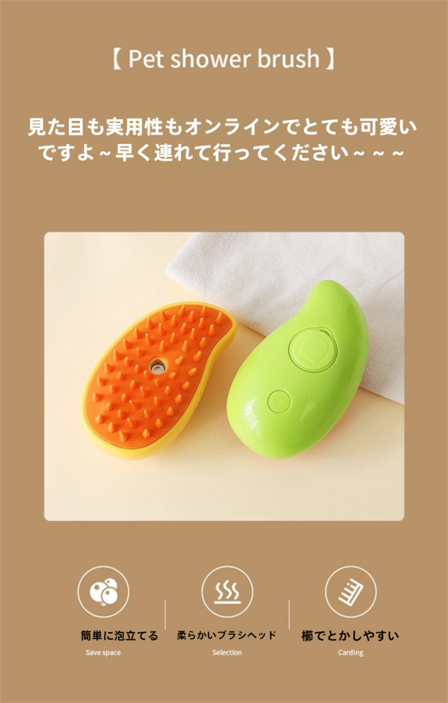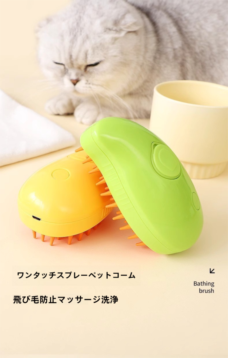 忙しいペットオーナーにぴったりの新アイテムが登場!スチームとスプレー機能で、愛犬・愛猫の毛のお手入れを簡単に行えます。浮き毛をしっかりキャッチしつつ、マッサージ機能がペットのリラックスタイムをお手伝いします!入浴不要で短時間でケアができるのも大きなポイントです!