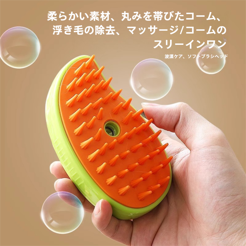 1015.ペット用スチームブラシ 抜け毛取り マッサージ機能付き