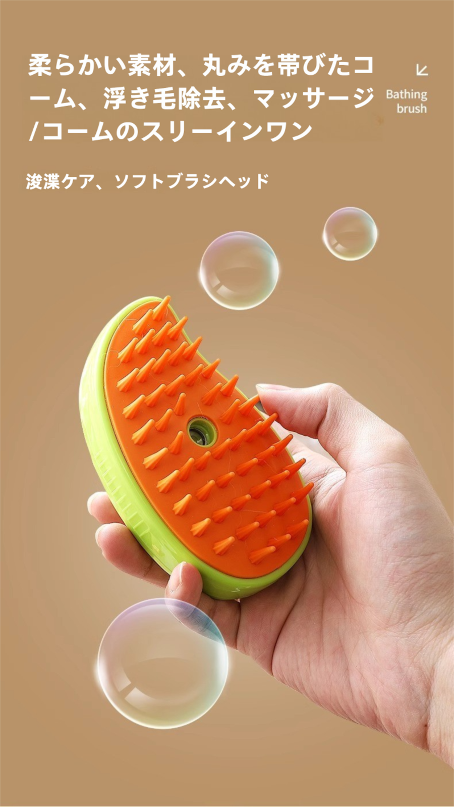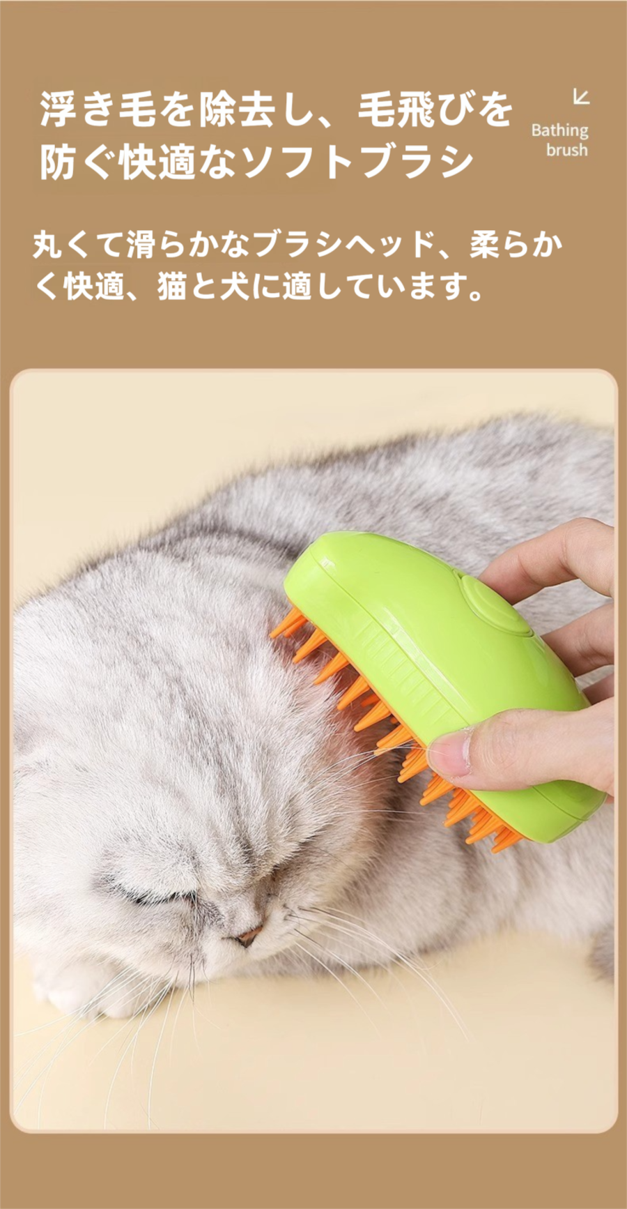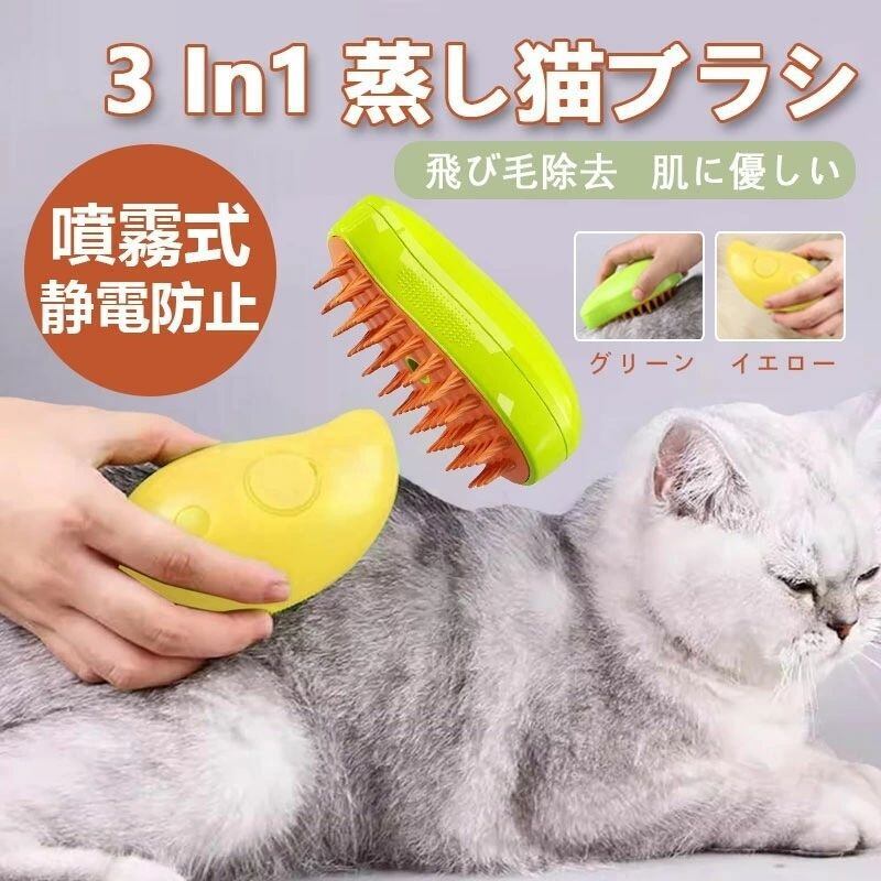 ペット用 スチーム&スプレー ブラシ ~浮き毛取り&マッサージ機能付き 犬猫兼用 入浴不要 時短ケア!